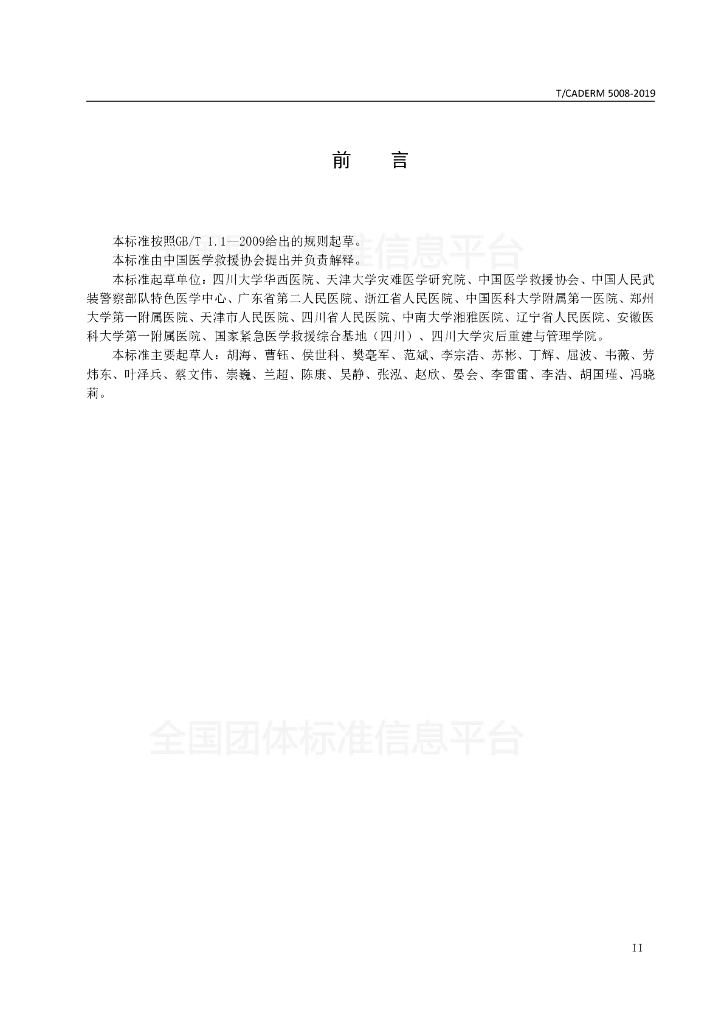 四川大学华西医院、天津大学灾难医学研究院、中国医学救援协会、中国人民武装警察部队特色医学中心、广东省第二人民医院、浙江省人民医院、中国医科大学附属第一医院、郑州大学第一附属医院、天津市人民医院、四川省人民医院、中南大学湘雅医院、辽宁省人民医院、安徽医科大学第一附属医院、国家紧急医学救援综合基地(四川)、四川大学灾后重建与管理学院