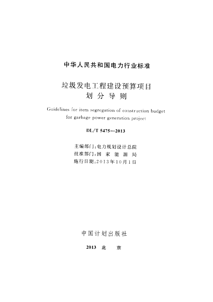 DL/T 5475-2013 垃圾发电工程建设预算项目划分导则