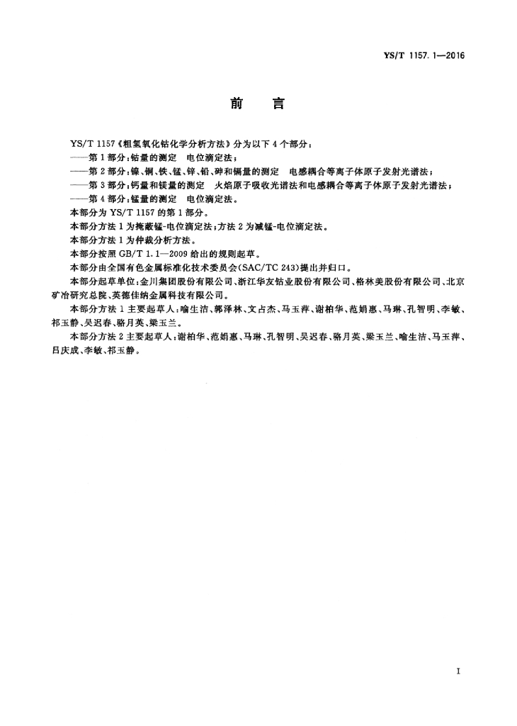YS/T 1157.1-2016 粗氢氧化钴化学分析方法 第1部分:钴量的测定 电位滴定法
