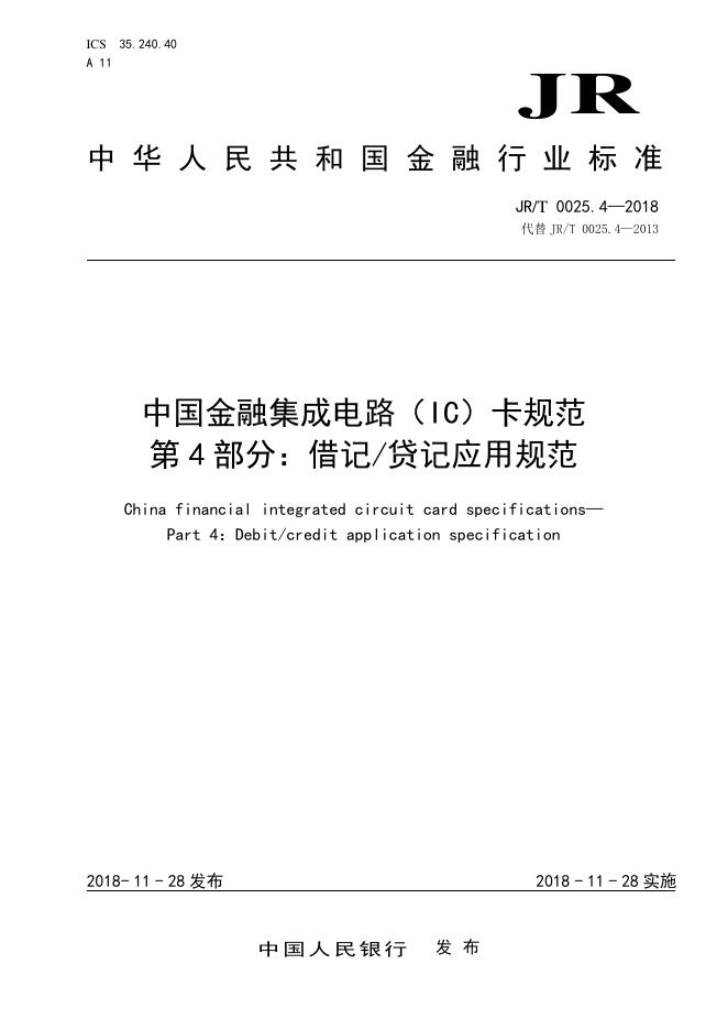 - 代替标准:JR/T 0025.4-2013 部分代替:JR/T 0025.4-2005、JR/T 0025.4-2010