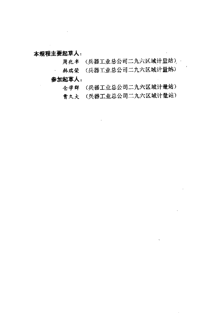 周兆丰(兵器工业总公司二九六区域计量站)、韩瑞荣(兵器工业总公司二九六区域计量站)、仓学群(兵器工业总公司二九六区域计量站)、曹久大(兵器工业总公司二九六区域计量站)