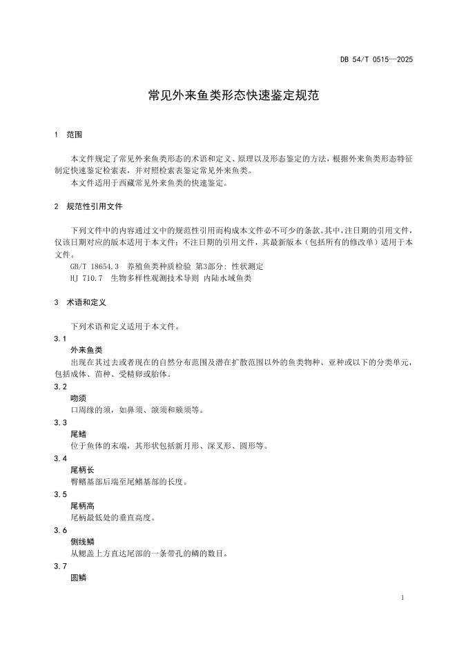 DB54/T 0515-2025 常见外来鱼类形态快速鉴定规范