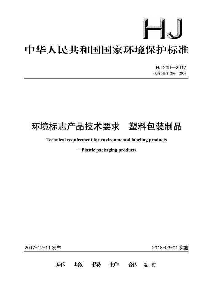 HJ 209-2017 环境标志产品技术要求 塑料包装制品