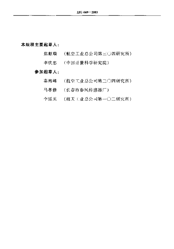 焦献瑞(航空工业总公司第三○四研究所)、李庆忠(中国计量科学研究院)、秦海峰(航空工业总公司第三○四研究所)、马孝修(长春市春风传感器厂)、李廷元(航天工业总公司第一○二研究所)