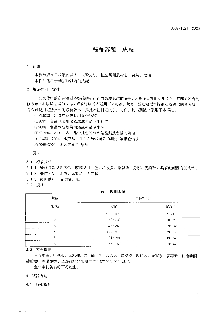 DB32/T 329-2006 鳗鲡养殖 成鳗
