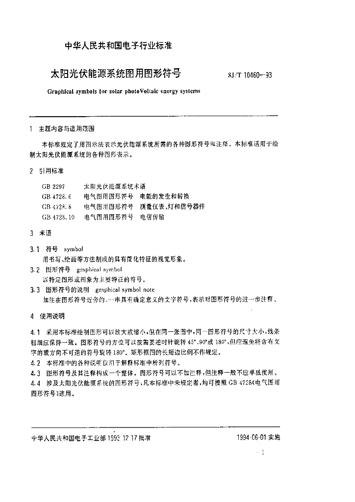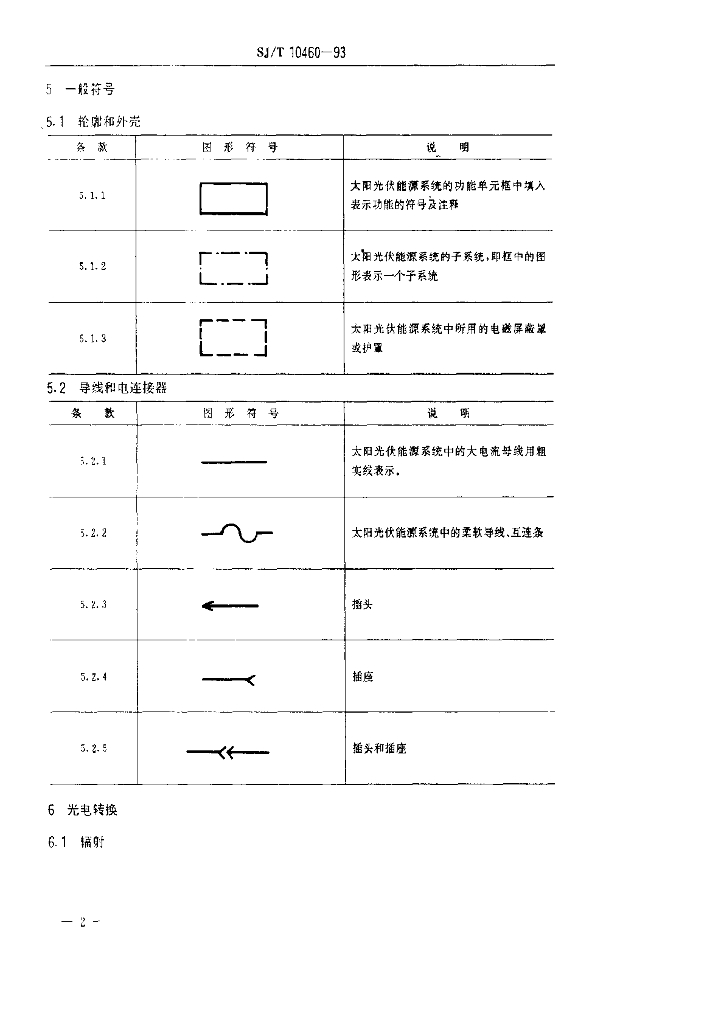 SJ/T 10460-1993 太阳光伏能源系统图用形符号