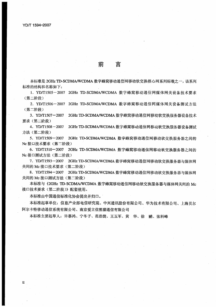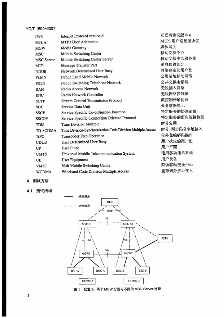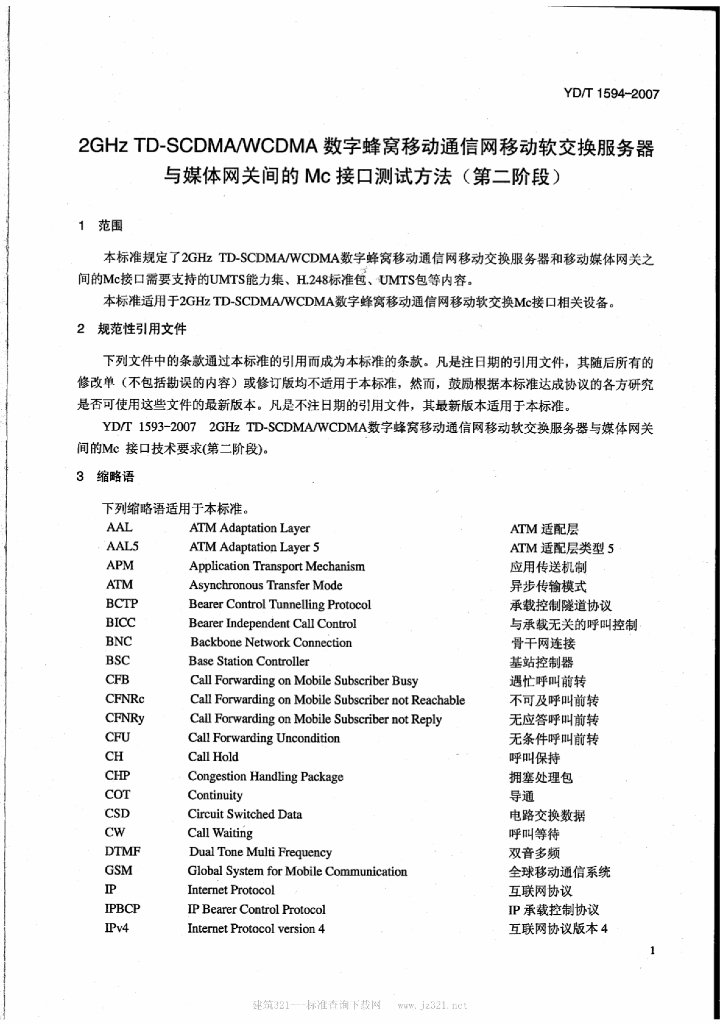YD/T 1594-2007 2GHz TD-SCDMA/WCDMA 数字蜂窝移动通信网移动软交换服务器与媒体网关间的 Mc 接口测试方法(第二阶段)