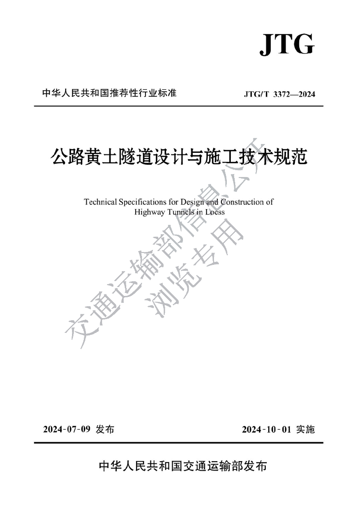 JTG/T 3372-2024 公路黄土隧道设计与施工技术规范