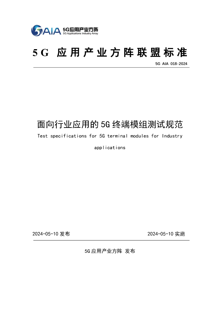 5G AIA 018-2024 面向行业应用的5G终端模组测试规范