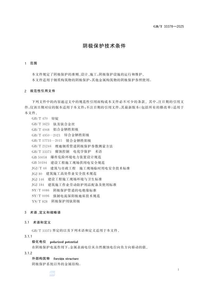 GB/T 33378-2025 阴极保护技术条件