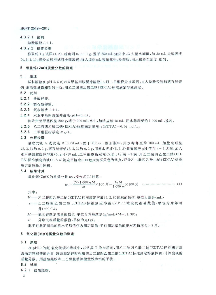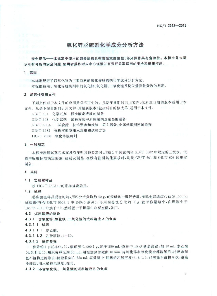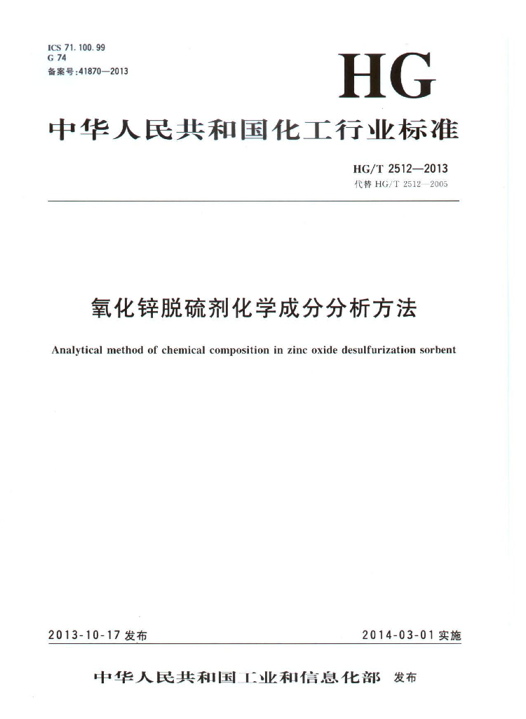 HG/T 2512-2013 氧化锌脱硫剂化学成分分析方法
