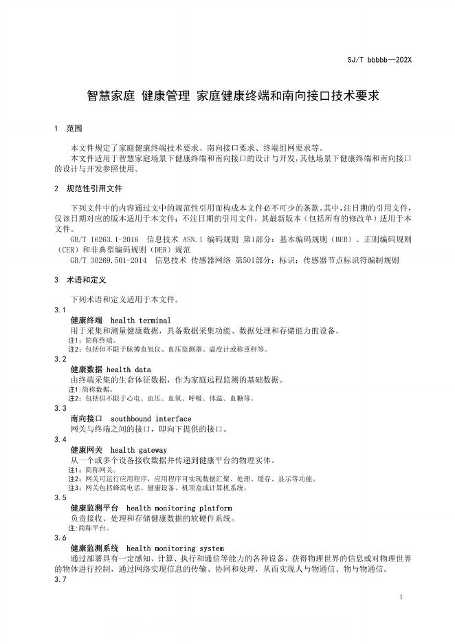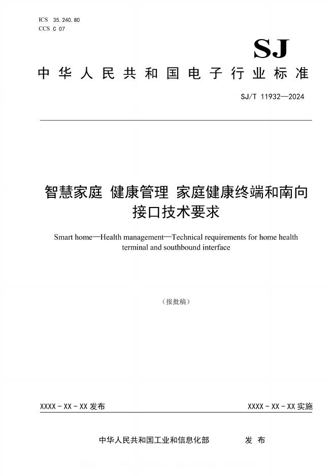 SJ/T 11932-2024 智慧家庭 健康管理 家庭健康终端和南向接口技术要求(报批稿)