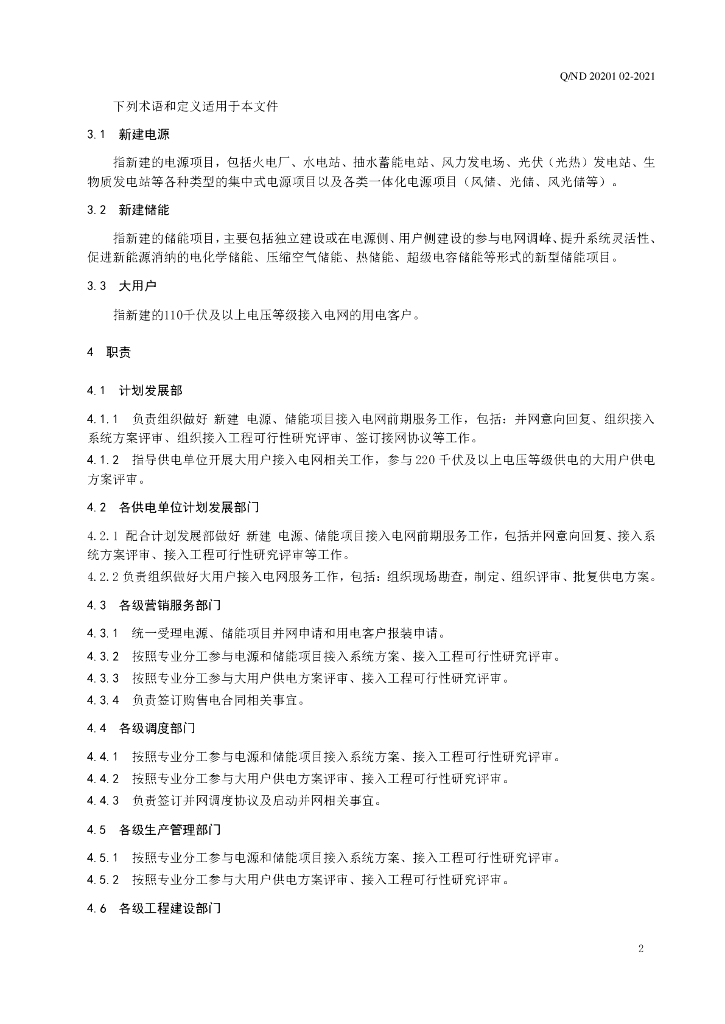 Q/ND 20201 02-2021 新建电源、储能项目及大用户并网管理标准