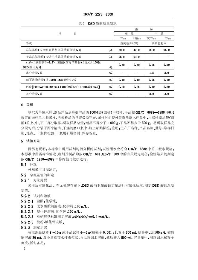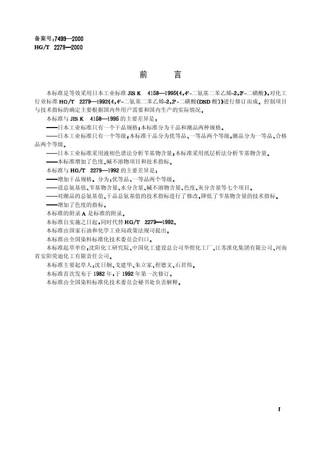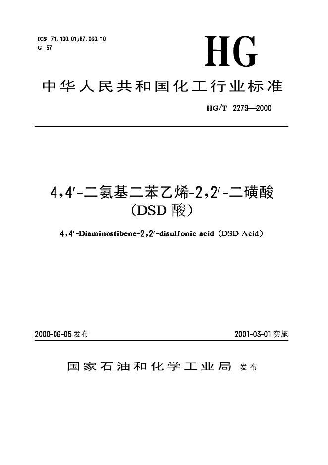 HG 2279-1992 4,4’一二氨基二苯乙烯-2,2’一二磺酸(DSD酸)