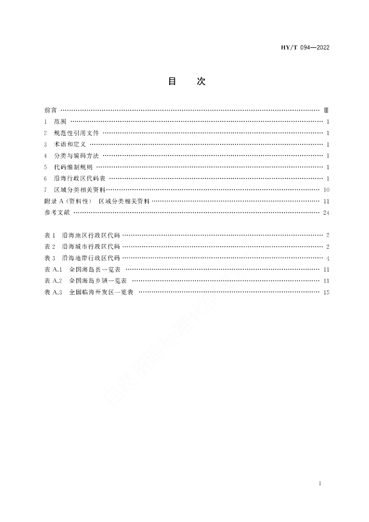 HY/T 094-2022 沿海行政区域分类与代码