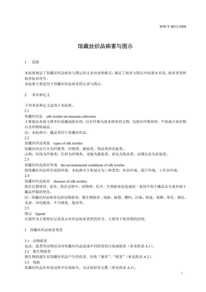 WW/T 0013-2008 馆藏丝织品病害与图示