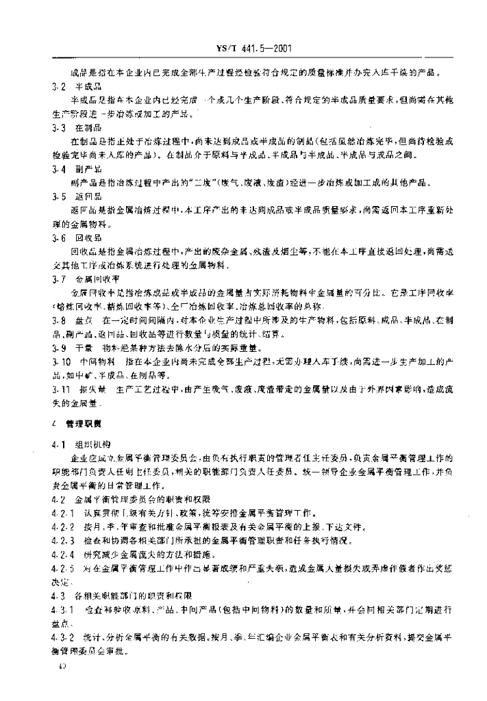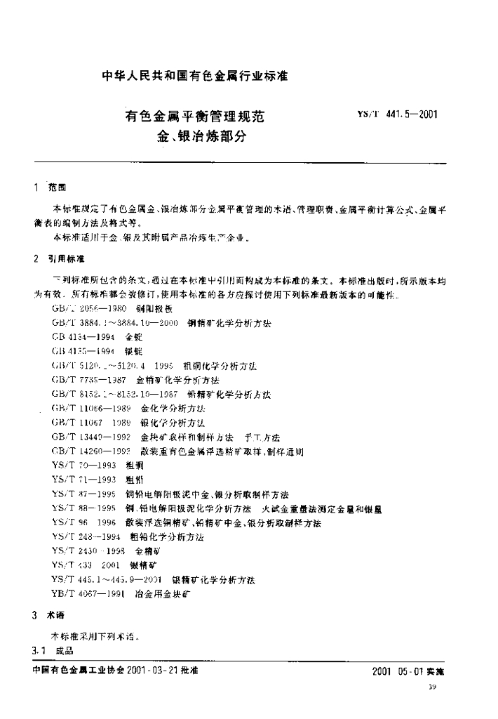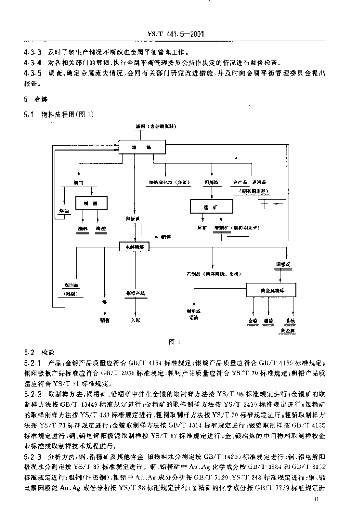 YS/T 441.5-2001 有色金属平衡管理规范金、银冶炼部分