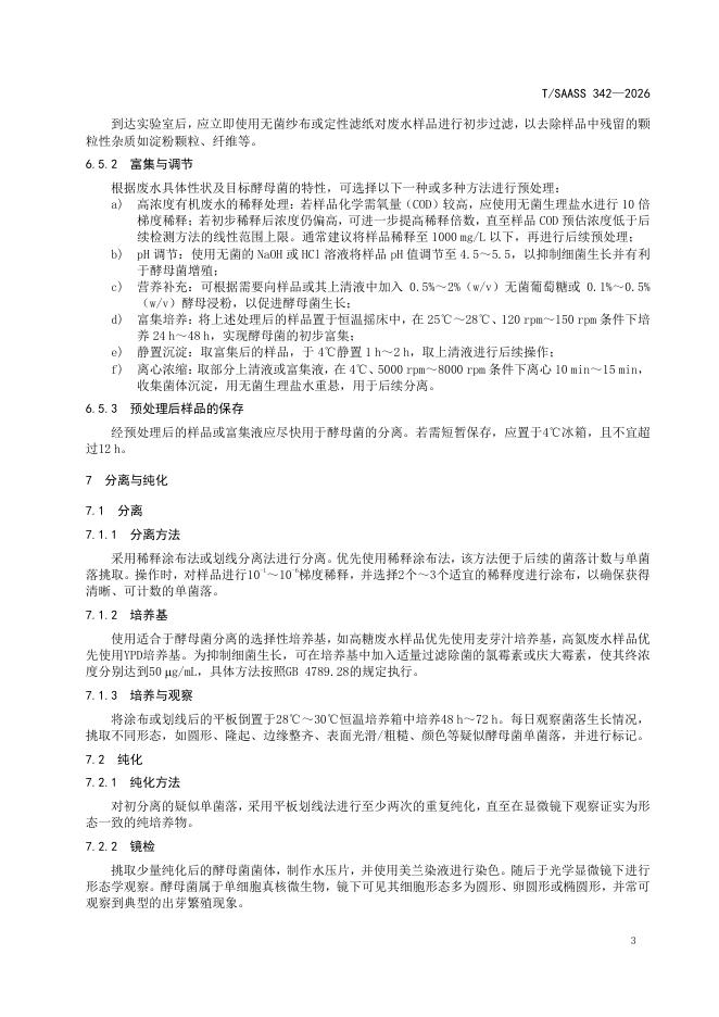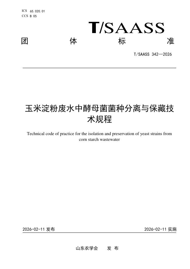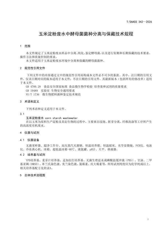 T/SAASS 342-2026 玉米淀粉废水中酵母菌菌种分离与保藏技术规程