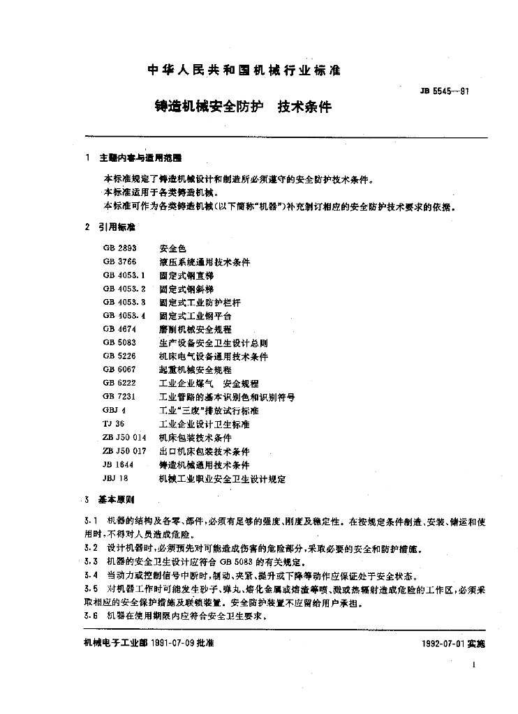 JB/T 5545-1991 铸造机械安全防护 技术条件