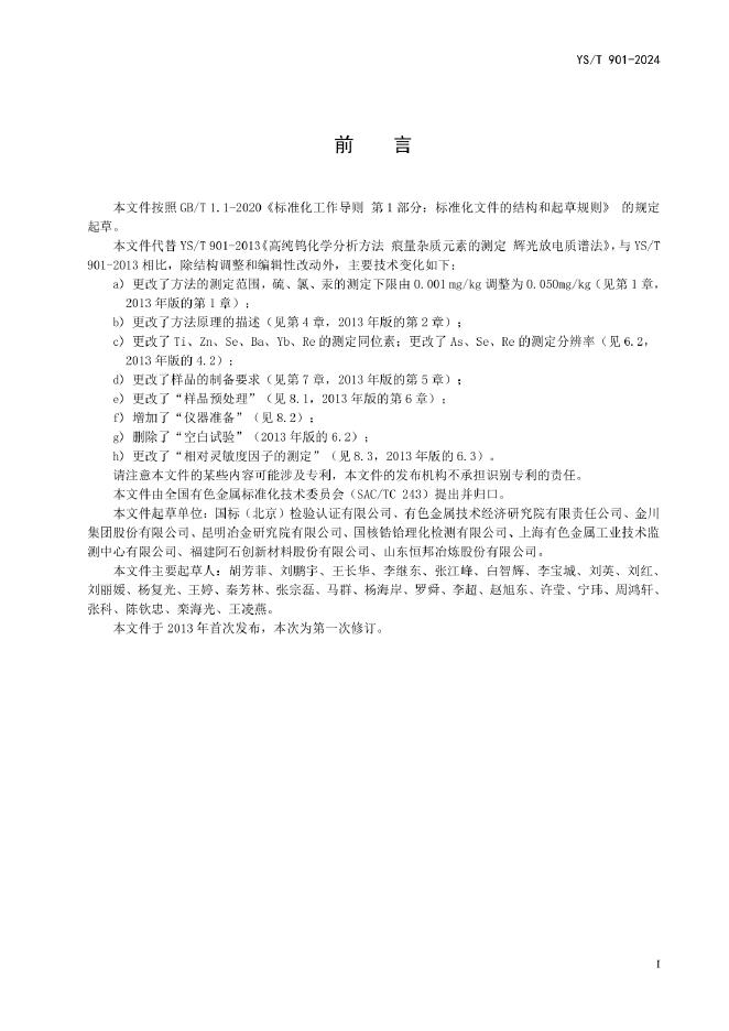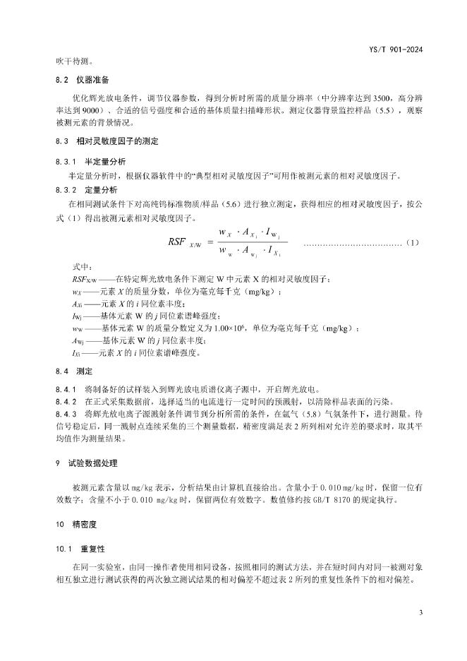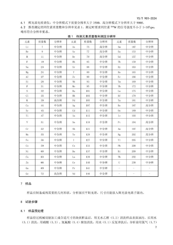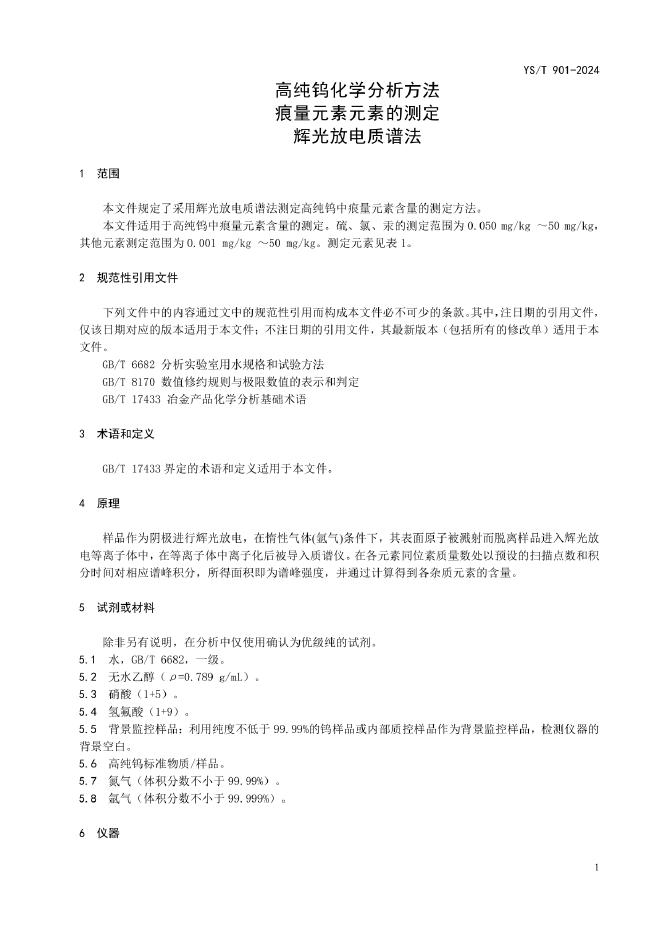 YS/T 901-2024 高纯钨化学分析方法 痕量元素含量的测定 辉光放电质谱法
