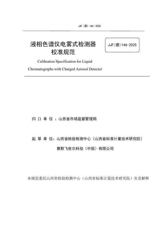 JJF(晋)146-2025 液相色谱仪电雾式检测器校准规范