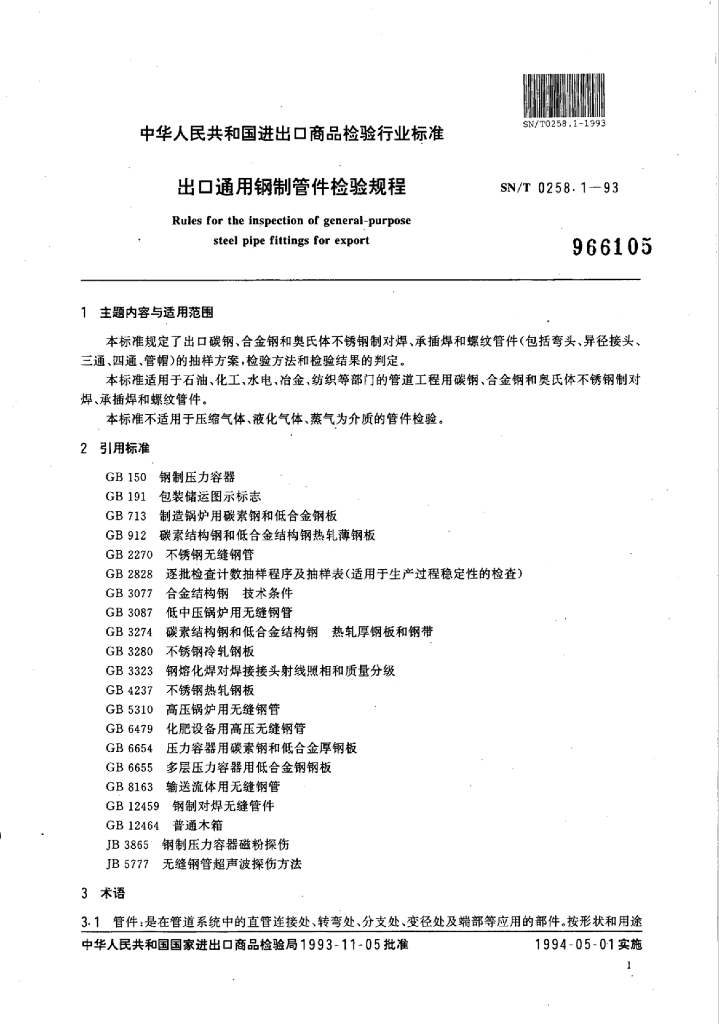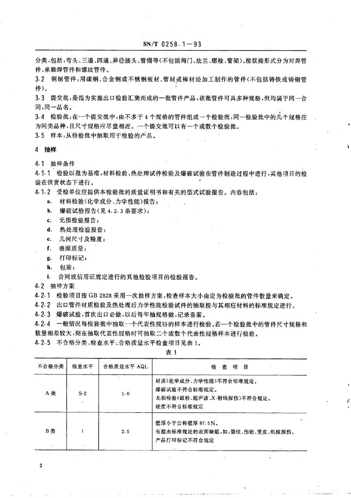 SN/T 0258.1~0258.2-1993 出口通用钢制和铸铁管件检验规程