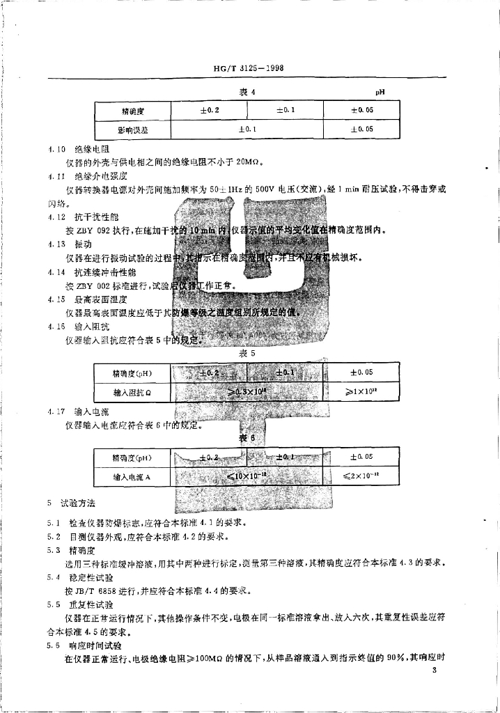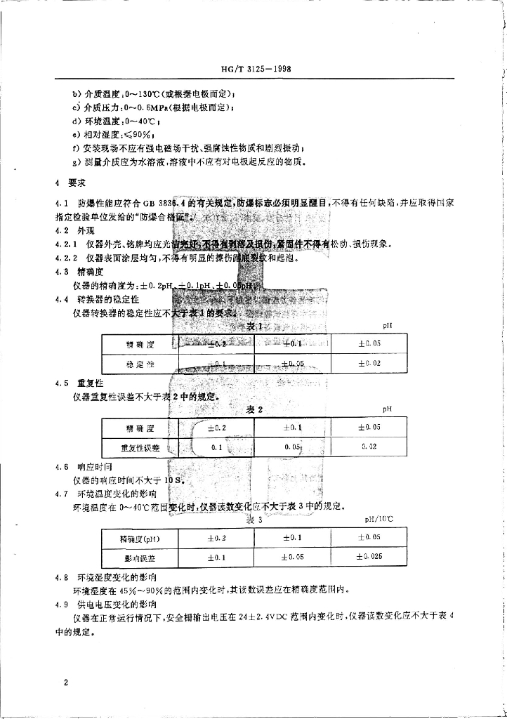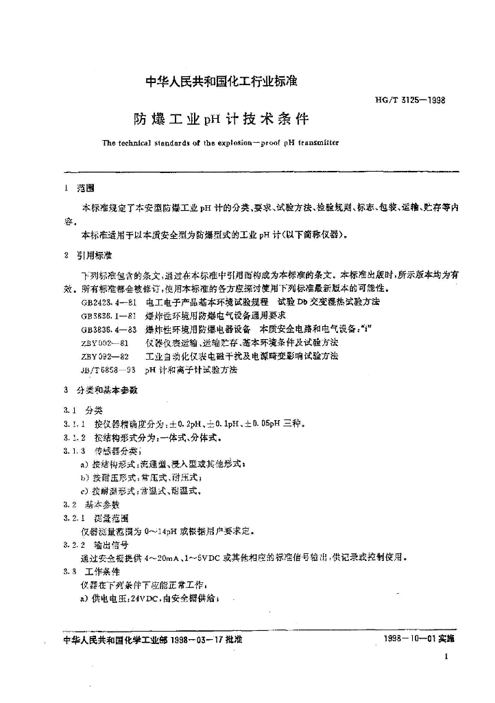 HG/T 3125-1998 防爆工业PH计技术条件
