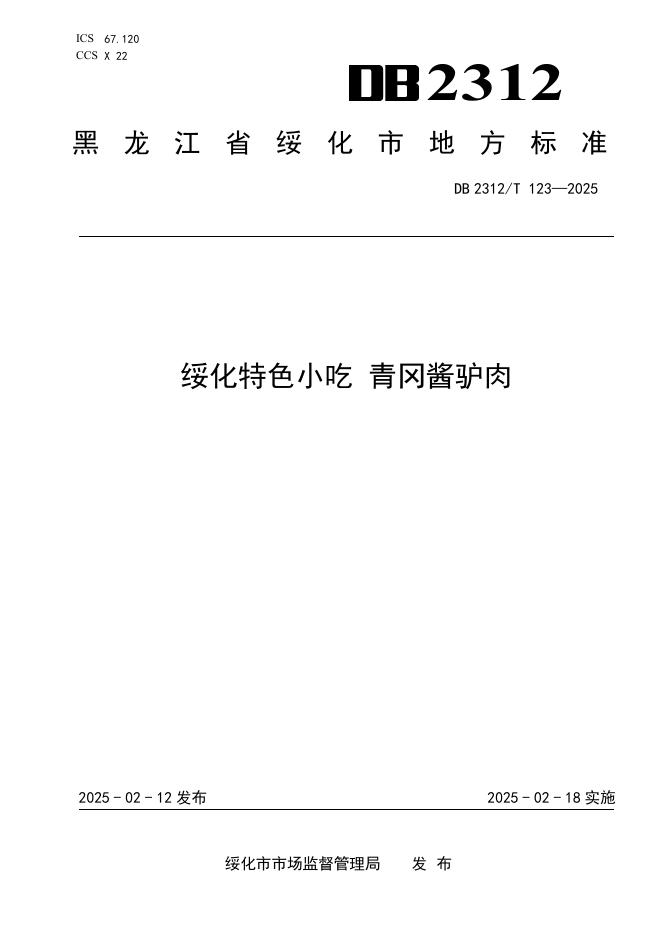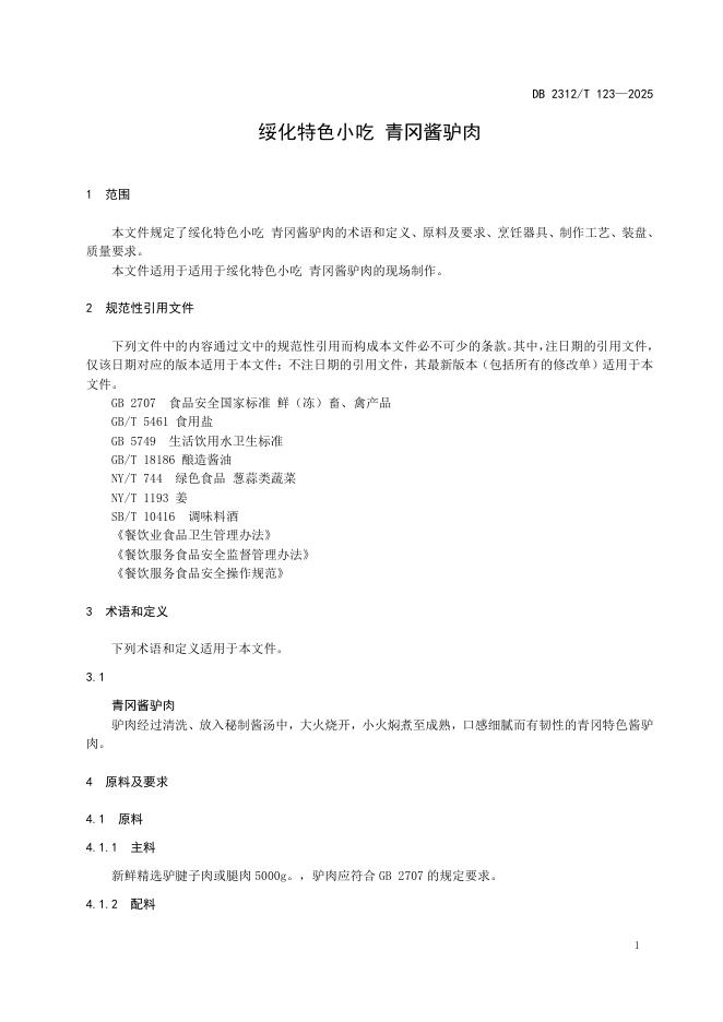 DB2312/T 123-2025 绥化特色小吃 青冈酱驴肉