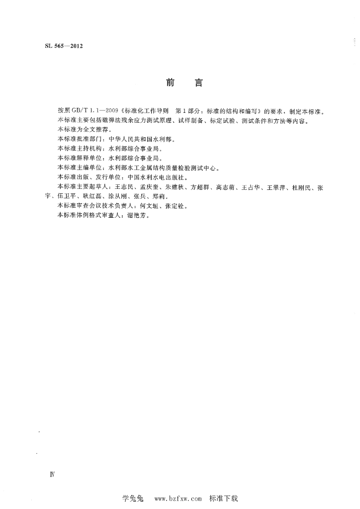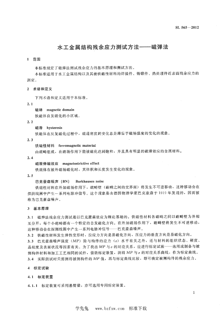 SL 565-2012 水工金属结构残余应力测试方法 磁弹法