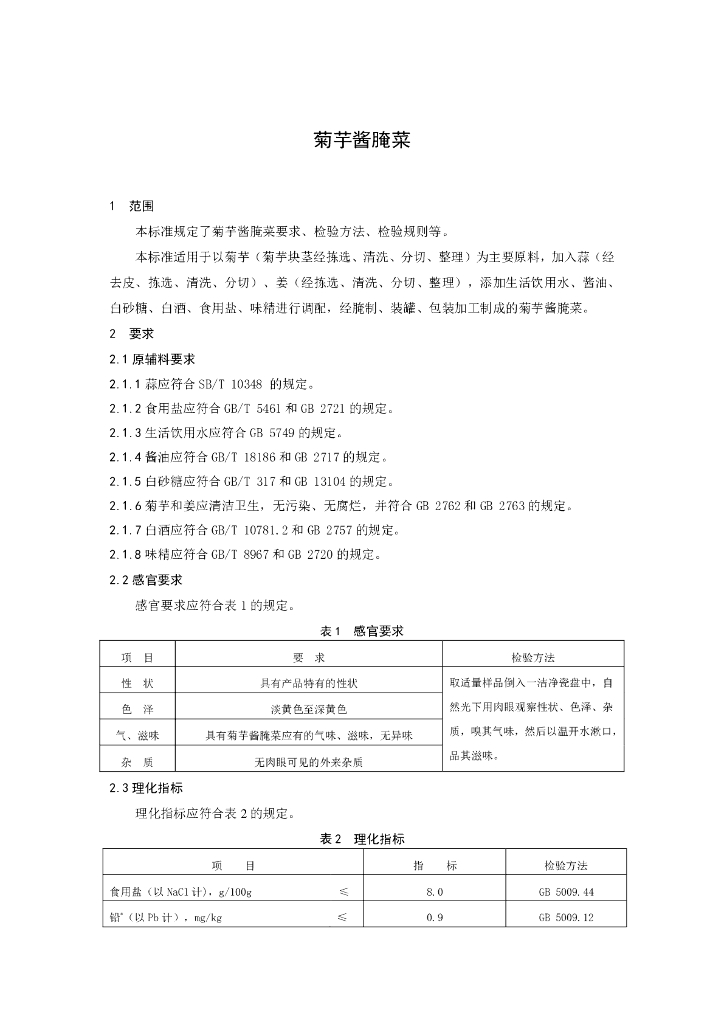 Q/HGYF 0001S-2022 菊芋酱腌菜