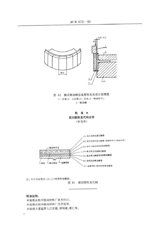 JC 472-1992 汽车盘式制动块总成和鼓式制动蹄总成剪切强度试验方法