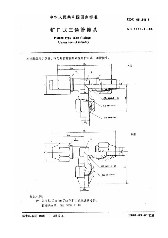GB/T 5639.1-1985 扩口式三通管接头