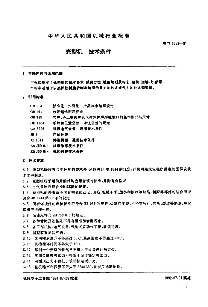 JB/T 5552-1991 壳型机 技术条件