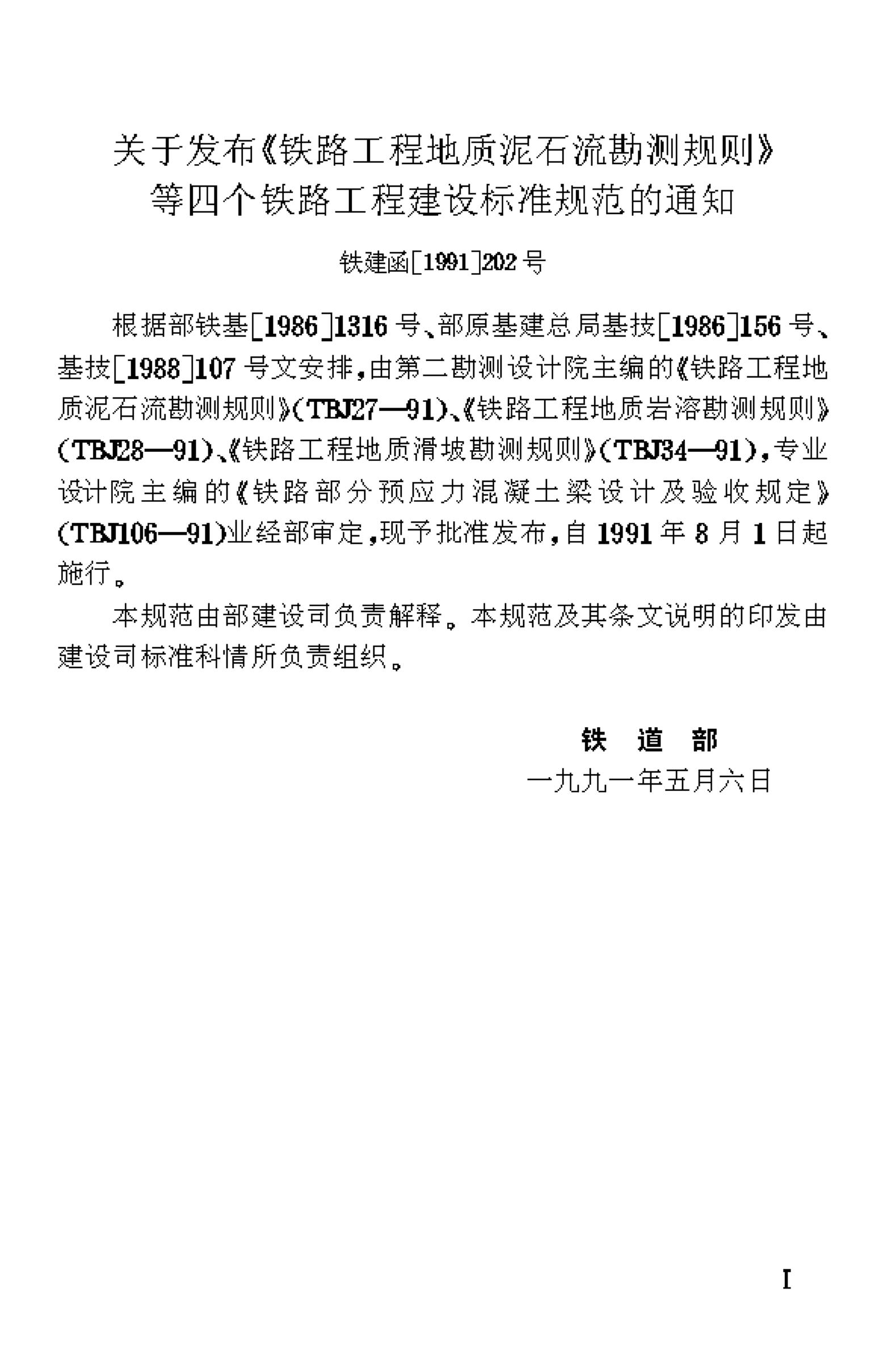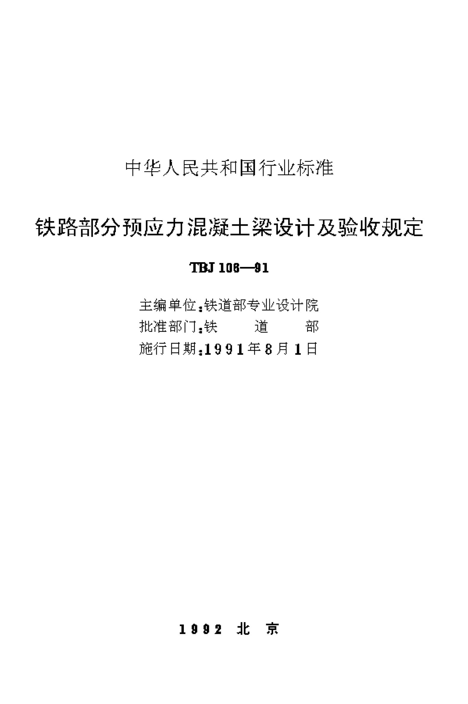 TBJ 106-1991 铁路部分预应力混凝土梁设计及验收规定