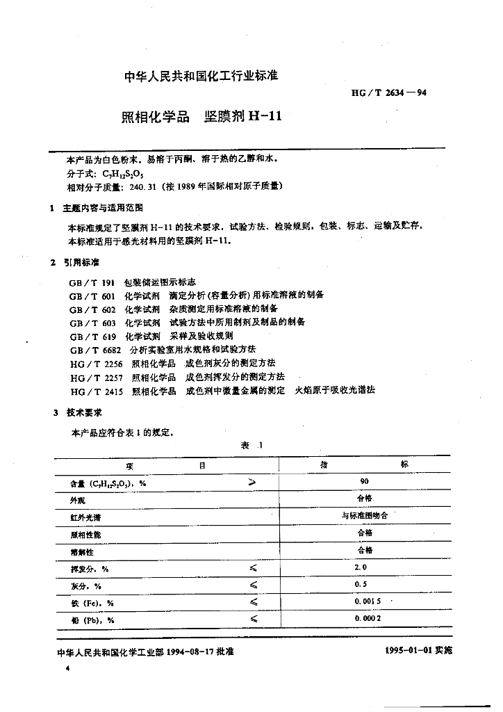 HG/T 2634-1994 照相化学品 坚膜剂H-11