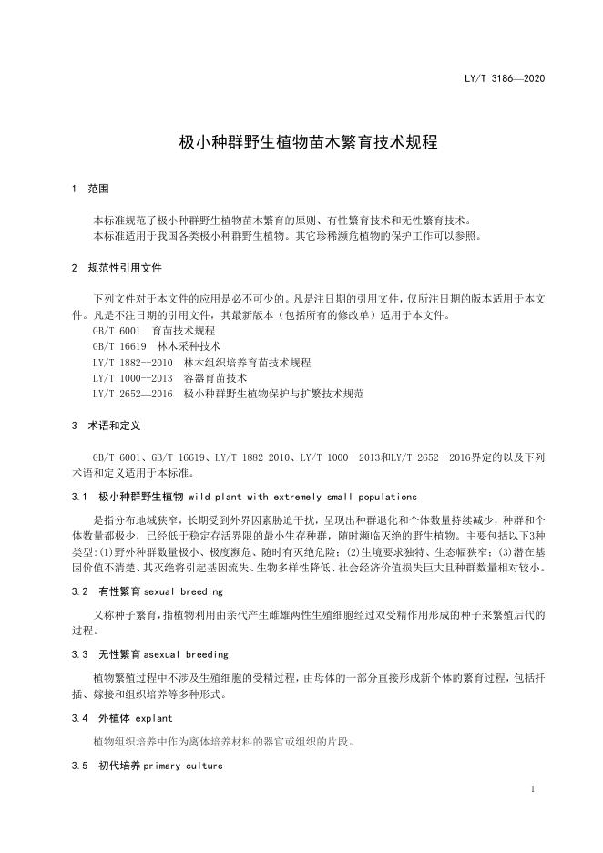 LY/T 3186-2020 极小种群野生植物苗木繁育技术规程