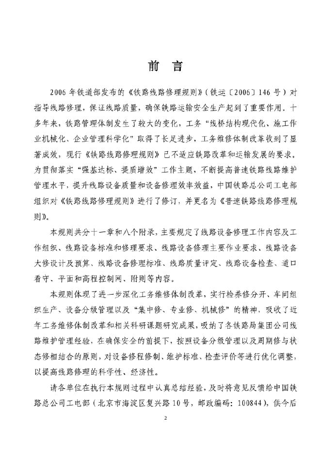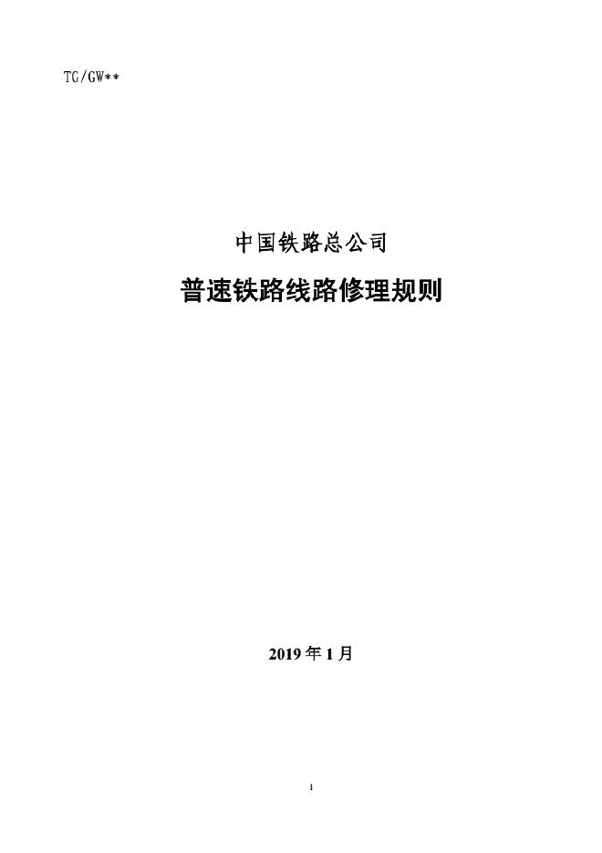 TG/GW 102-2019 中国铁路总公司普速铁路线路修理规则