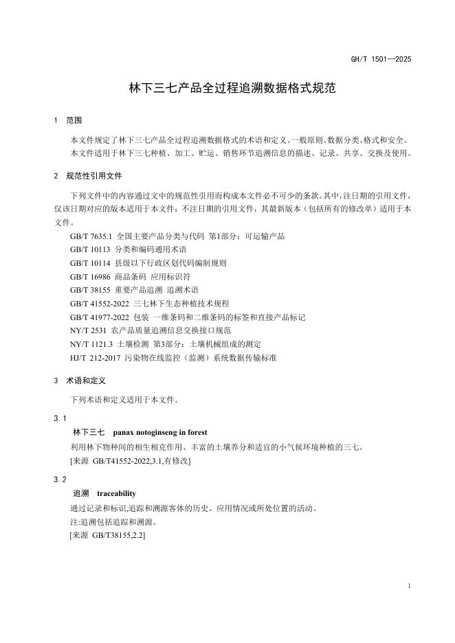 GH/T 1501-2025 林下三七产品全过程追溯数据格式规范
