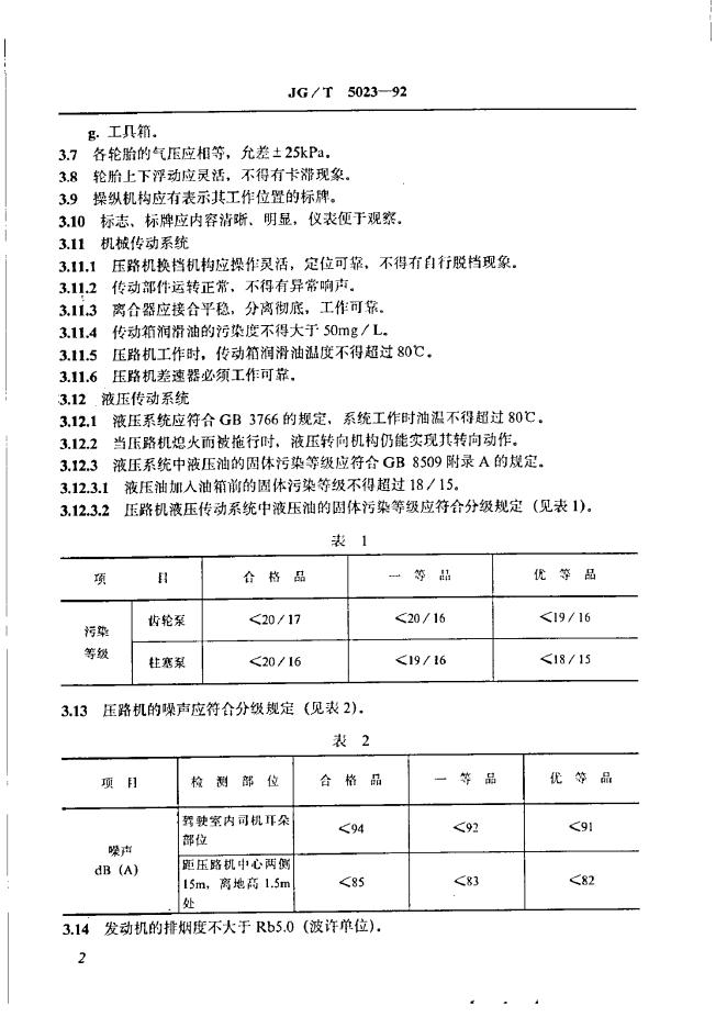 JG/T 5023-1992 轮胎压路机技术条件