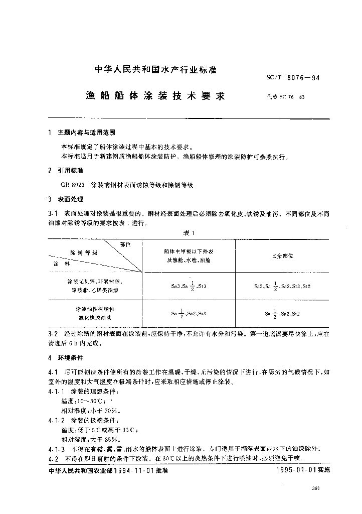 SC/T 8076-1994 渔船船体涂装技术要求