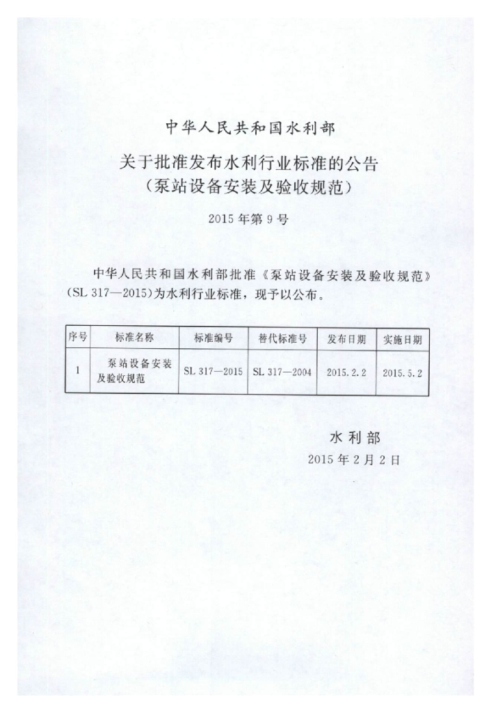 SL 317-2015 泵站设备安装及验收规范(含条文说明)