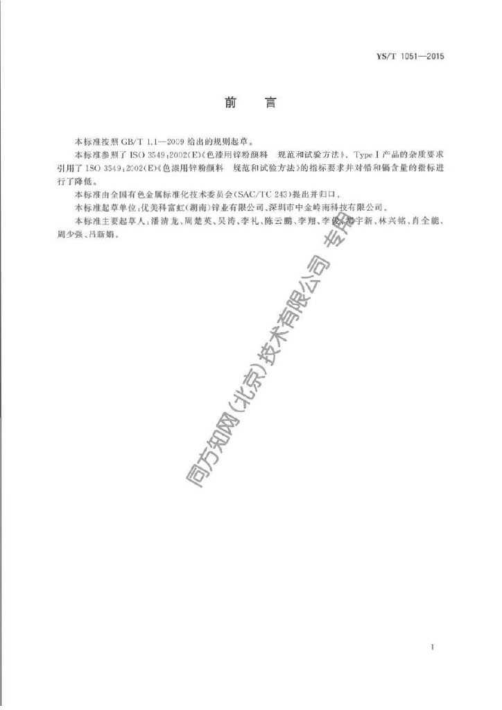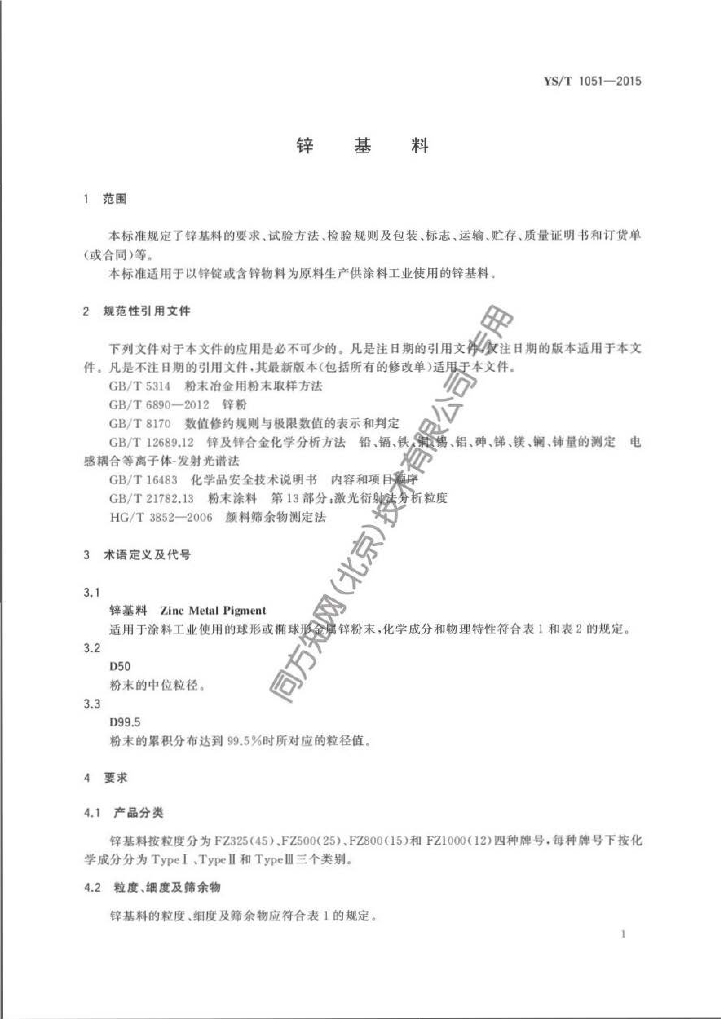 YS/T 1051-2015 锌基料