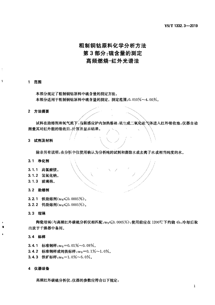 YS/T 1332.3-2019 粗制铜钴原料化学分析方法 第3部分:硫含量的测定 高频燃烧-红外光谱法