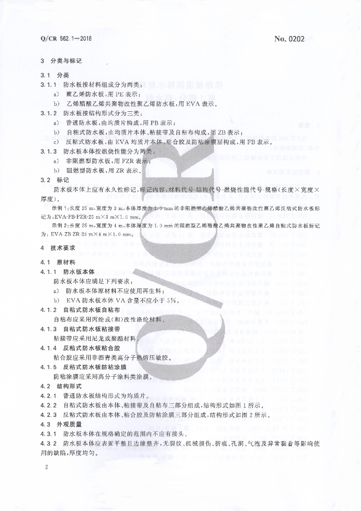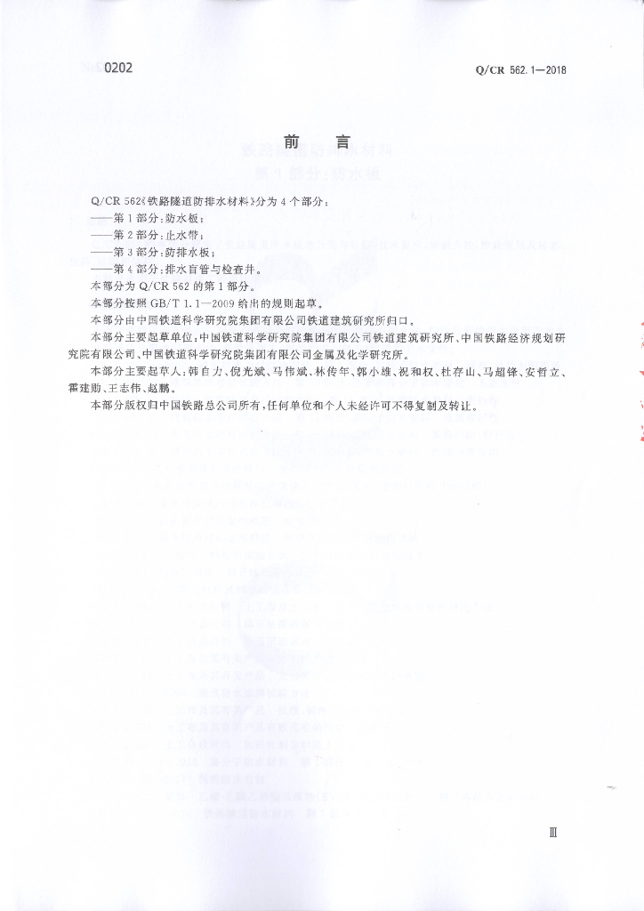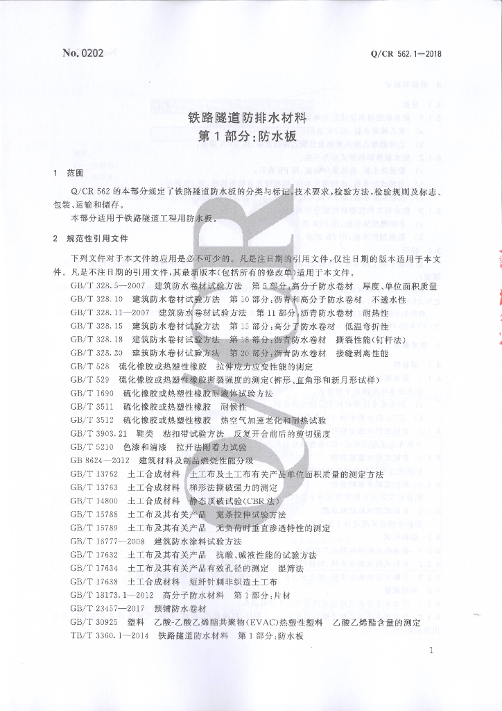 Q/CR 562.1-2018 铁路隧道防排水材料 第1部分 防水板