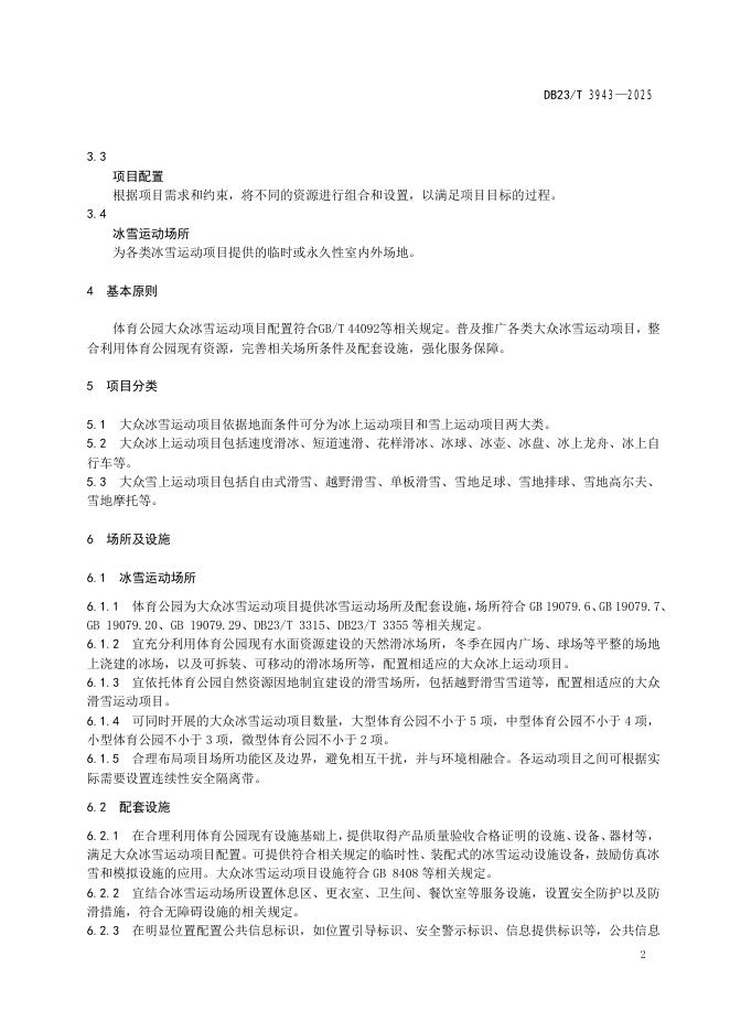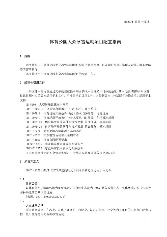 DB23/T 3943-2025 体育公园大众冰雪运动项目配置指南
