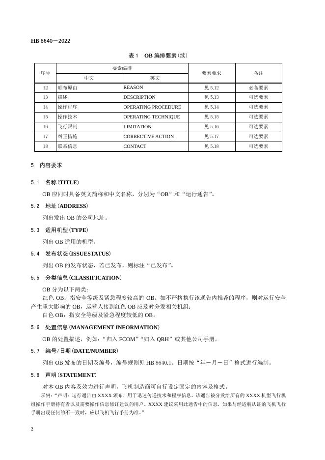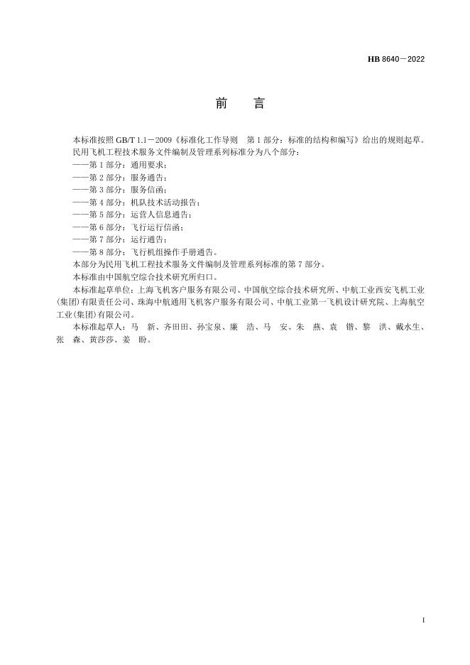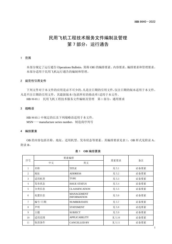 HB 8640-2022 民用飞机工程技术服务文件编制及管理 第7部分:运行通告