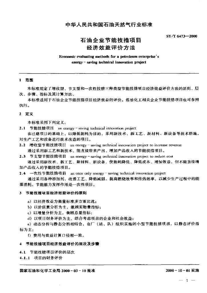 SY/T 6473-2000 石油企业节能技措项目经济效益评价方法