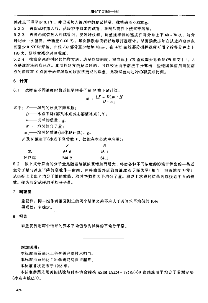 SH/T 0169-1992 矿物绝缘油平均分子量测定法(冰点降低法)