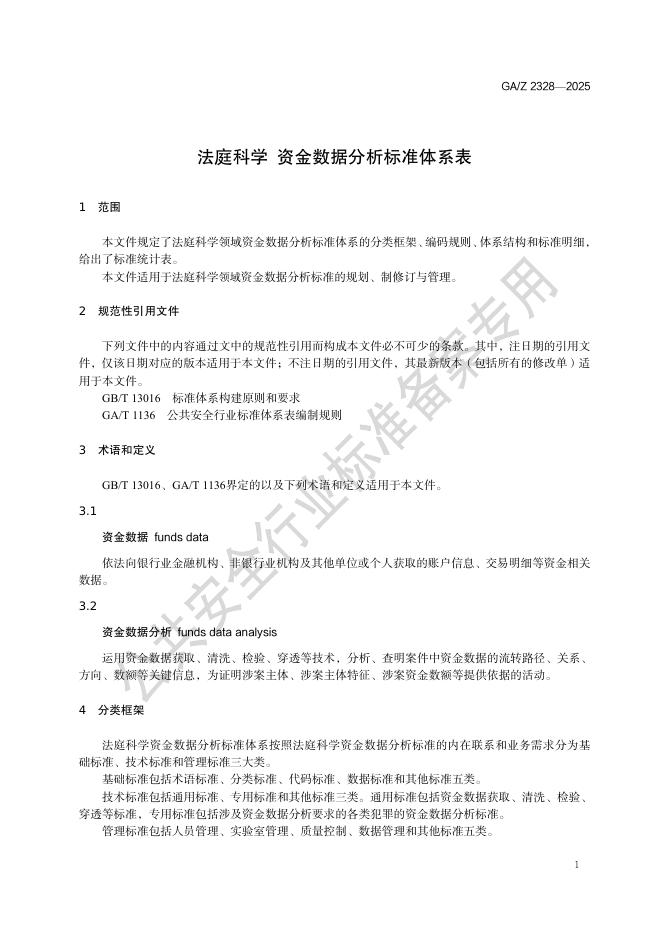 GA/T 2328-2025 法庭科学 资金数据分析标准体系表