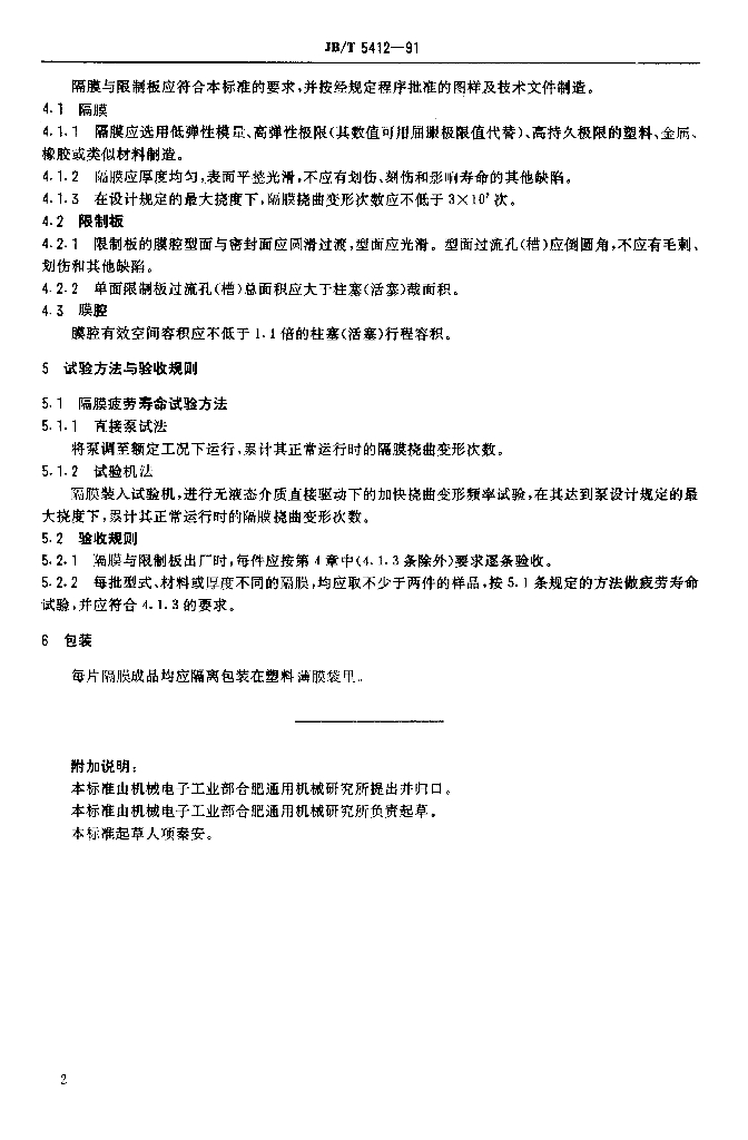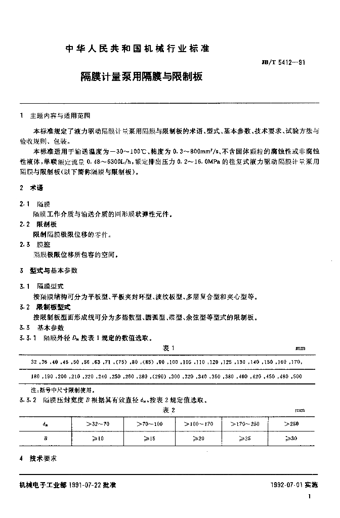 JB/T 5412-1991 隔膜计量泵用隔膜与限制板